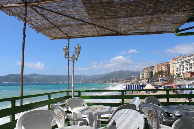 Käppäilemme kaikessa rauhassa pitkin Savonan katuja ja katsomme kartasta, että parin kilometrin päässä olisi hiekkaranta ja rantapromenadi. Suuntaamme meren rantaa kohti ohittaen pieniä kahviloita ja myymälöitä. Onpa rauhallista. Hiljalleen meri alkaa kimaltaa horisontissa ja vaahtopäiset aallot iskevät rantaan. Hiekkarannalla ei vielä tähän aikaan  keväästä ole ketään, sillä kova tuuli pitää lämpötilan matalana. Auringon paistaessa tarkenee kuitenkin välillä t-paidassakin.