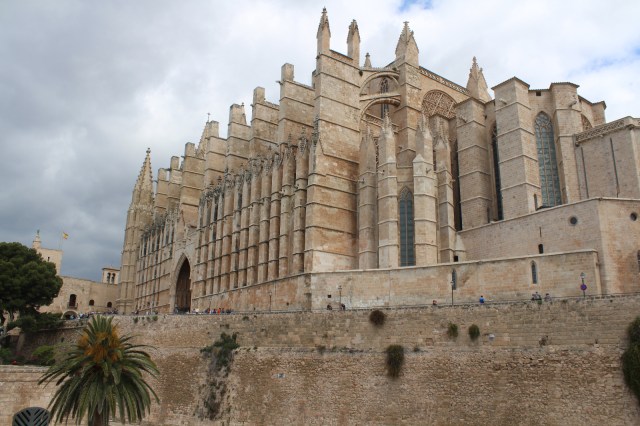 Lähdemme katsomaan lähempää Mallorcan katedraalia, joka näkyi ylväänä jo hytin parvekkeellekin. Kiertelemme sen ympärillä ja ihastelemme maisemia merelle ja satamaan. Vanhassakaupungissa kapeat kadut ja  matkamuistomyymälät parveilevat turisteja ja me vaellamme hissukseen alas rannan kävelytielle.