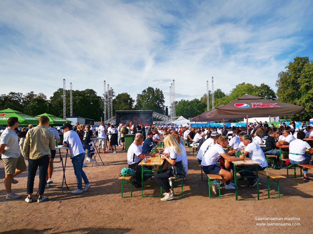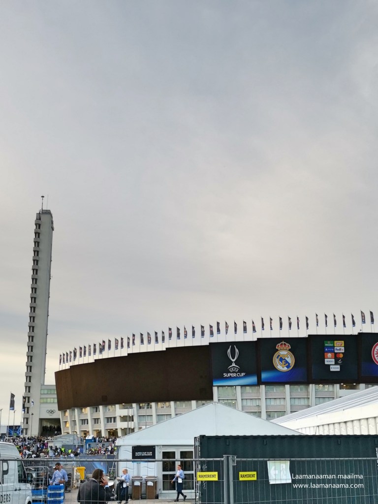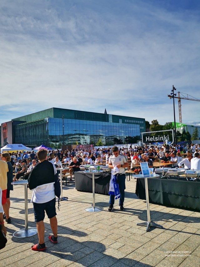 Helsingin keskusta kuhisee ihmisiä lämpimänä elokuun iltapäivänä. Kävelen Töölönlahtea pitkin ohi kansallismuseon ja suunnistan Musiikkitalon vierestä Kansalaistorille, johon on perustettu Fan Festival Super Cupin ajaksi. Tarkoituksena on käydä hyvissä ajoin hakemassa Super Cupin matsihuivi muistoksi.