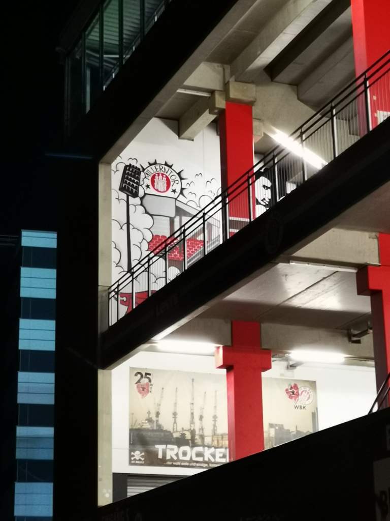 Kaksi peliä samana päivänä on tiukka setti, mutta painamme kuin pikkulapset karkkikauppaan lauantai-illan FC St. Pauli – SV Darmstadtin otteluun Kielin aamupäivän vierailun jälkeen. Reeperbahn kuhisee ja porukkaa valuu baareihin, epämääräisiin teknoklubeihin, seksikauppoihin ja me nöösipojat Millerntorille, FC St. Paulin kotiluolaan.