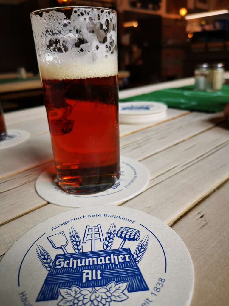0,25 litran legendaariset Altbierit saapuvat pöytään jatkuvalla syötöllä kuten aina ja pari tuntia vierähtää leppoisasti paikallisoluen ja -ruoan sekä myös paikallisseuran merkeissä. Meitä moikkaamaan tullut Düsseldorfissa asuva Fortunan kannattaja Niina (nimi muutettu) ehdottaa vielä lopuksi Killepitschien tilaamista ja tuo toimikin kuin Deutche Bahn – arveluttavasti ja vähän sinnepäin.