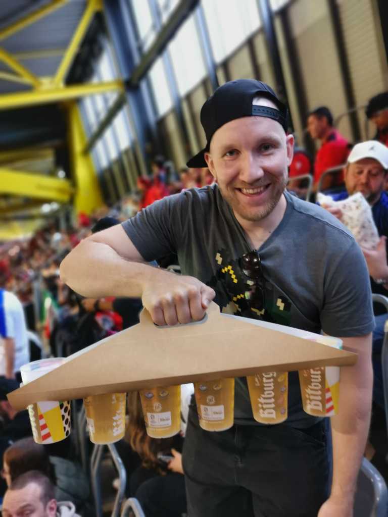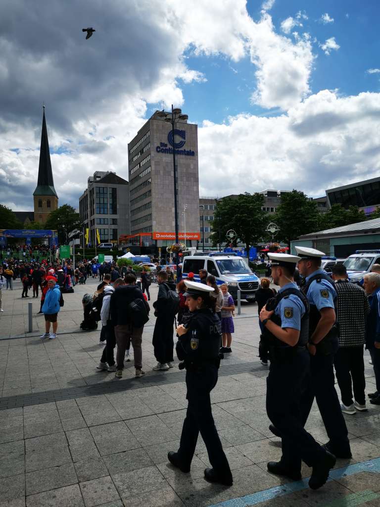 Matsin jälkeen palauttelimme kisatuopit, jotta saamme niistä kolmen euron pantit takaisin. Tapa on järkevä ja toimiva, kun muoviroskaa tulee vähemmän ja samalla saa kuitenkin halutessaan matkamuistoksi kisamukin. Paluumatka Dortmundin asemalle menee iisisti kävellen kivassa kesäkelissä, vaikka julkisillakin pääsisi. Lopulta kahdentoista aikoihin lähtevään paluujunaan hyppää hieman väsyneet futismiehet ja alkoivat valmistautumaan seuraavaan pelipäivään. Sunnuntaina kohtaisivat Serbia ja Englanti.