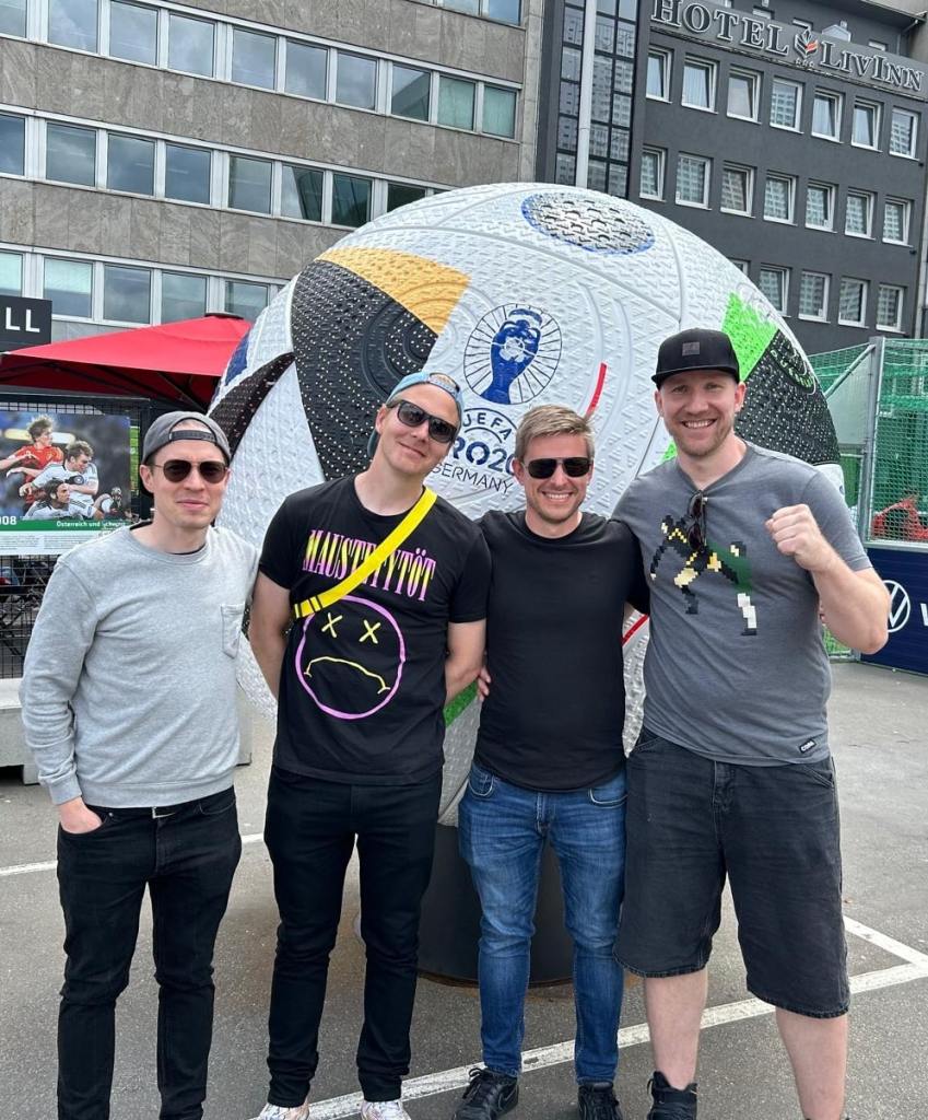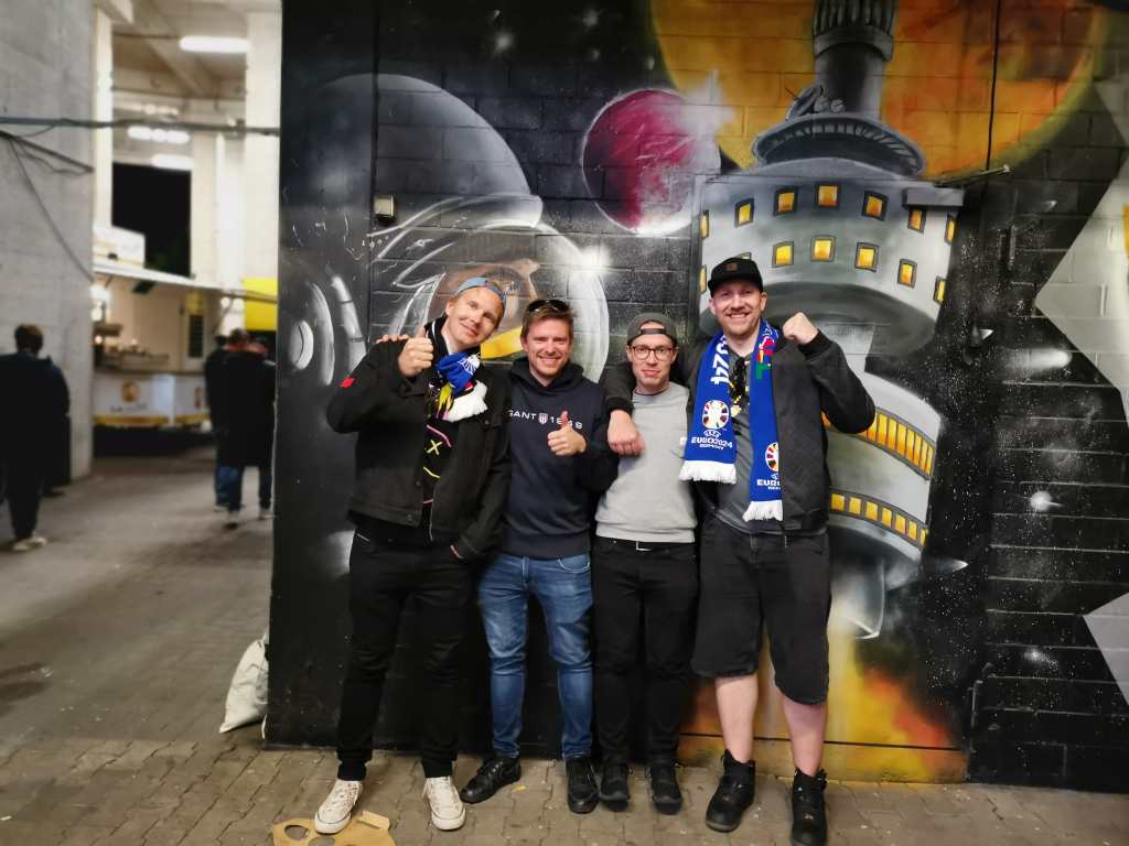 Laitoimme lokakuussa 2023 kahdeksan kaveruksen kesken hakemukset sisään UEFA:n lippuportaalin kautta kesän 2024 EM-kisoihin, jotka pelataan ympäri Saksaa. Vanhoina Saksan kävijöinä pyrimme saamaan mahdollisimman paljon lippuja Ruhrin alueen peleihin, jotta etäisyydet pysyisivät pieninä ja onnistuimmekin tässä kohtalaisen hyvin. Kahdeksasta lippujen vonkaajasta kolmella tärppäsi ja vieläpä eri matseihin, joten onni oli kerrankin suotuisa. Matkaan lähtivät edellisiltä reissuiltakin tutut Ååkke (nimi muutettu, toinen vasemmalla) Mailapoika (toinen oikealla) sekä Mieskarkki (äärioikea).