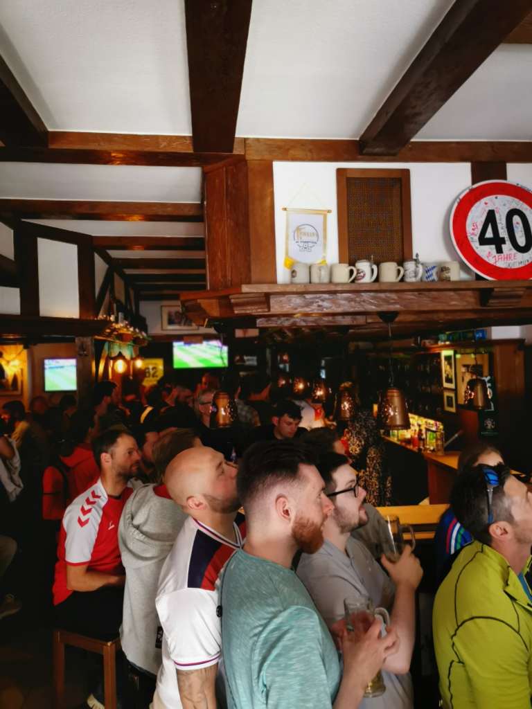 Düsseldorf 15.6.2024 klo 9.00. Olimme saapuneet Saksaan kisojen avauspäivänä 14.6. eli Italia – Albania matsia edeltävänä iltana, joten karstat oli otettu koneesta jo ennen ensimmäistä matsia. Hotellin aamupalalla EM-kisat näkyivät selvästi, kun tärisevin käsin samoja appelsiinimehulaseja pöytään kuljettelivat myös skotit, englantilaiset, sveitsiläiset, italialaiset sekä albanialaiset. Meidän päivän suunnitelmat olivat selkeät. Kello 11 ollaan Schumacherin panimoravintolassa ja sieltä sitten kohti Dortmundin junaa hyvissä ajoin ennen kello 21 alkavaa peliä.