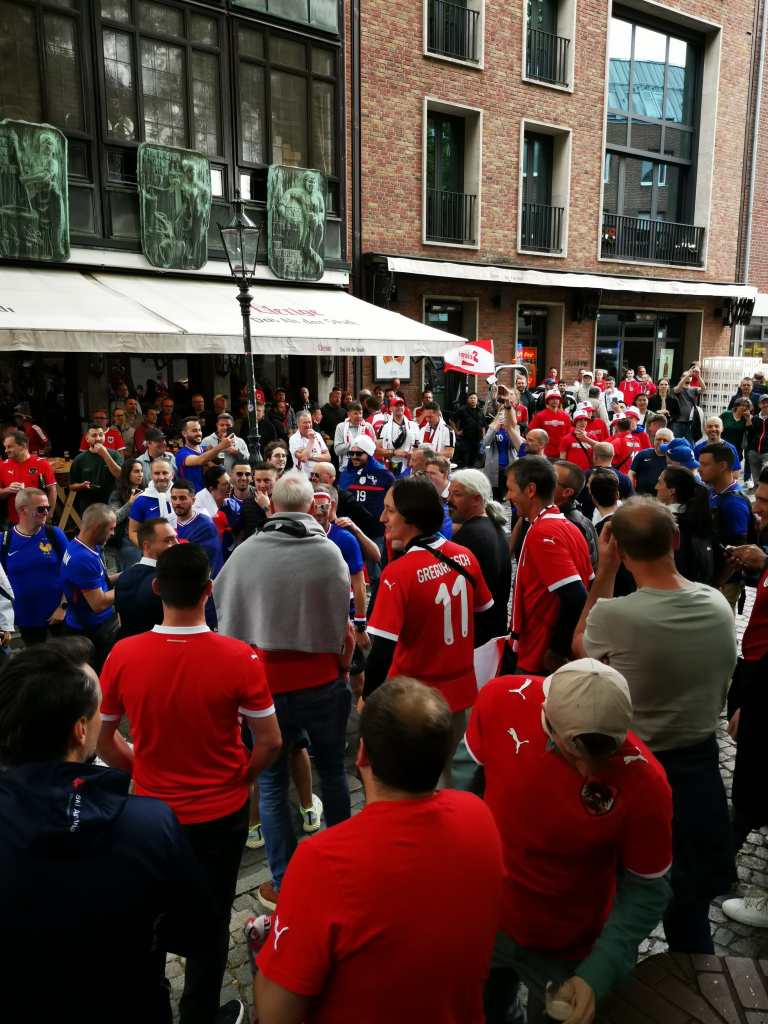 Vaikka matseja ei maanantaipäivänä livenä nähtykään, niin olimme koko päivän Düsseldorfin keskustassa nauttimassa ruoasta, oluesta, fanikulttuurista sekä kaupungin maisemista. Päivän pelit seurattiin Fan Zonelta sekä vanhankaupungin baareista, ja samalla tuli mukavia kohtaamisia myös muiden suomalaisten kanssa. Terkkuja vaan!