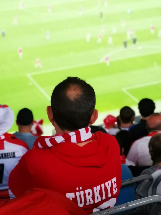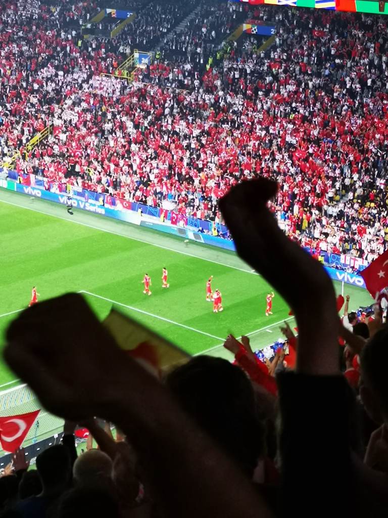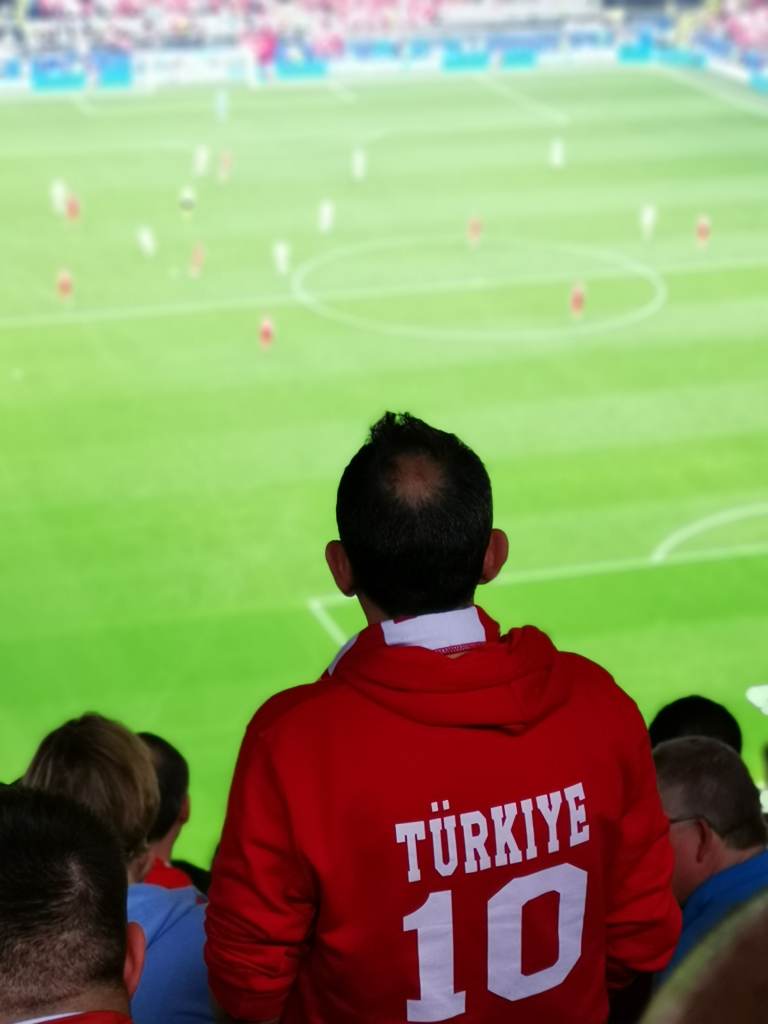 Joukkueet tulevat lämmittelyyn. En ole koskaan kohdannut vastaavaa meteliä kuin nyt. Otteluun on 45 minuuttia kun koko stadion hyppii ja pomppii. TüRKIYE, TüRKIYE! Jos kaksi edellistä ottelua jätti tunnelman osalta vähän kylmäksi, niin tämä ei tule niin tekemään. Mieletön, sairas meteli. Aivan tajuton. Edes BVB:n kotipeleissä ei tunnelma ole tälläinen kuin Turkki-kannattajien ympäröimällä stadikalla. Kaikki seisovat. Kaikki huutavat. Ihan kuin pelattaisiin jostain isommasta kuin EM-kisojen ensimmäisen kierroksen ottelusta. Mieleen muistuu Huuhkajien vierailut Turkissa ja puheet siitä kuinka vaikea siellä on pelata.