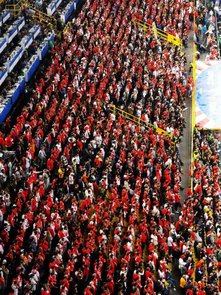 Kansallislaulujen aika. Turkin hymni on kuin maailman suurin karaoke. Georgian laulua ei tahdo kuulua, kun vihellyskonsertti on niin valtava.