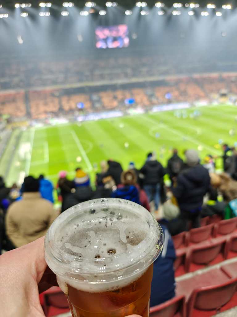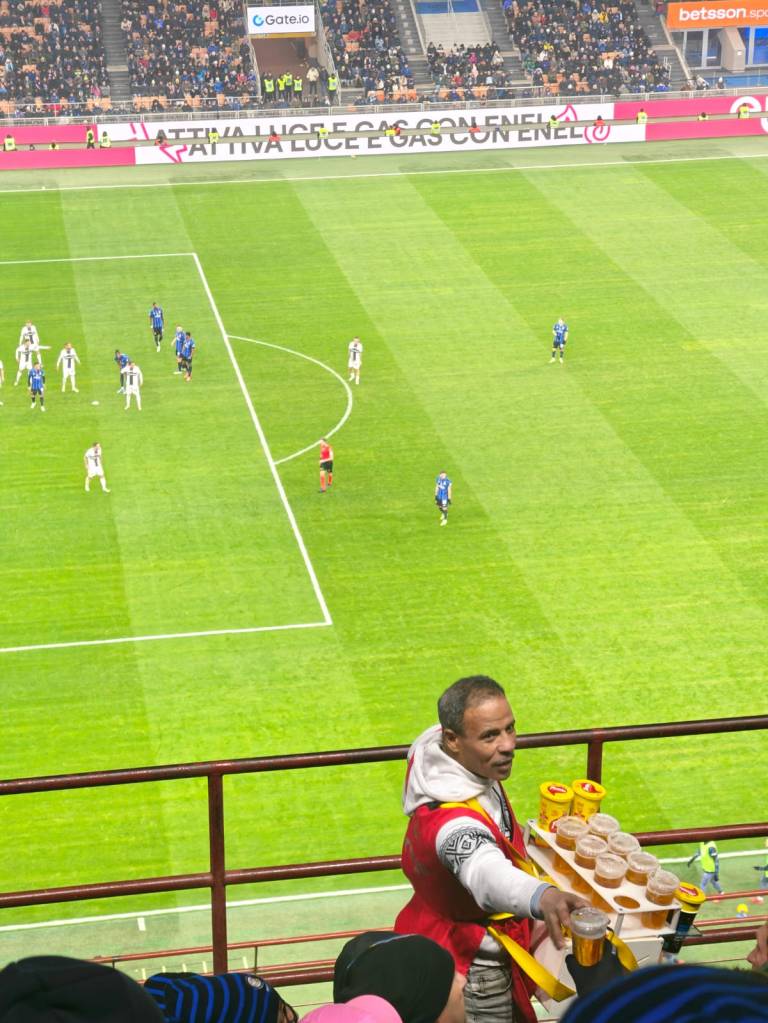 Olemme saapuneet stadionille pari tuntia ennen ottelun alkua, kuten isossa maailmassa on tapana. Ruuhkat metrossa jo tuolloin oli kohtalaisen suuret, joten saapumista ei missään tapauksessa kannata jättää ihan ottelun alle. Itsenäisyyspäivän perjantaina Seria A:ssa pelataan kaksi ottelua, Inter – Parma sekä Atalanta – AC Milan, joista jälkimmäinen oli meidän alkuperäisessä suunnitelmassa, mutta käsittämättömän kovien lipun hintojen (alkaen 95 euroa) vuoksi valitsimme Interin matsin. Jotenkin olin ajatellut, että Interin matsi alkaa klo 20:45, mutta onneksi havahduin asiaan Naviglen kaupunginosassa olut kädessä matsilippua katsoessani, että peli starttaakin kello 18:30. Onneksi tämä ei vaikuttanut mitenkään suunnitelmiin, kun kello tuossa vaiheessa oli tuskin kahtakaan, mutta aika vihkoon olisi stadikalle saapuminen mennyt mikäli tuota ei olisi huomannut.