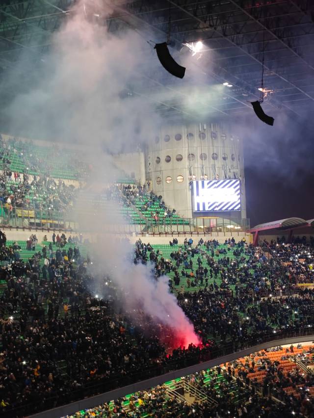 Milano 6.12.2024 klo 17:45. Stadionilla on yllättävän vaisua joukkueiden tulossa lämmittelemään. Tottakai Interin kentälle saapuminen saa isot aplodit ja Parman puolestaan vihellykset, mutta mitään lauluja ei kummastakaan päädystä kuulu eikä katsomot ole lähellekään täynnä. Melkoinen ero esimerkiksi Saksaan verrattuna, jossa on lähes mahdotonta löytää seisomapaikkaa puoli tuntia ennen peliä. Katsomot täyttyvät vihdoin vartti ennen ottelua ja kun ottelun kuuluttaja kertoo Interin aloituskokoonpanon, niin jokaisen pelaajan sukunimi huudetaan ilmoille mahtipontisen kovaa. Palaapa Curva Nordissa pari soihkuakin, ehkä tämä tästä.
