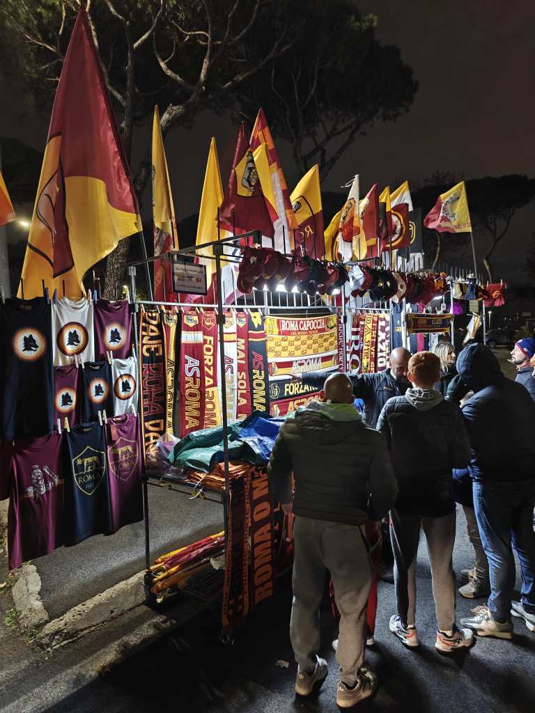 Rooma 7.12.2024 klo 18:00. Huristelemme metrolla päärautatieasema Terminiltä kohti Ottavianon metroasemaa, joka sijaitsee aivan Vatikaanin porteilla. Google Maps ohjaa meitä siirtymään bussilla stadionin viereen ja päätämme tehdä näin, kun porukkaa ei vielä niin paljoa ole matsiin menossa. Pian stadikan valot loistavatkin ikkunasta ja lähdemme nuuhkimaan matsitunnelmaa. Myyntitelttoja on pystytetty ympäri kadun varsia ja ihmisiä on kokoontunut alueelle jo reippaasti. Jossain kaukana paukkupommit räjähtelevät ja ottelupäivän merkit on näkyvillä ensimmäisen kerran Roomaan saapumisen jälkeen. Muutaman tarraostoksen jälkeen valumme kohti omaa katsomonosan sisäänkäyntiä.