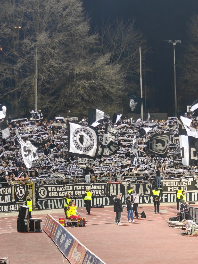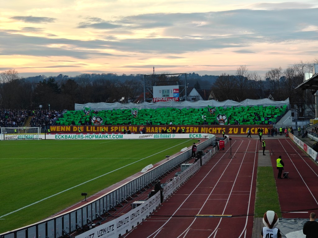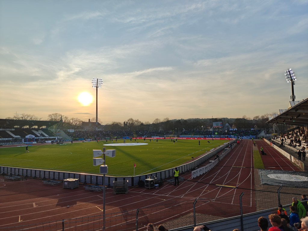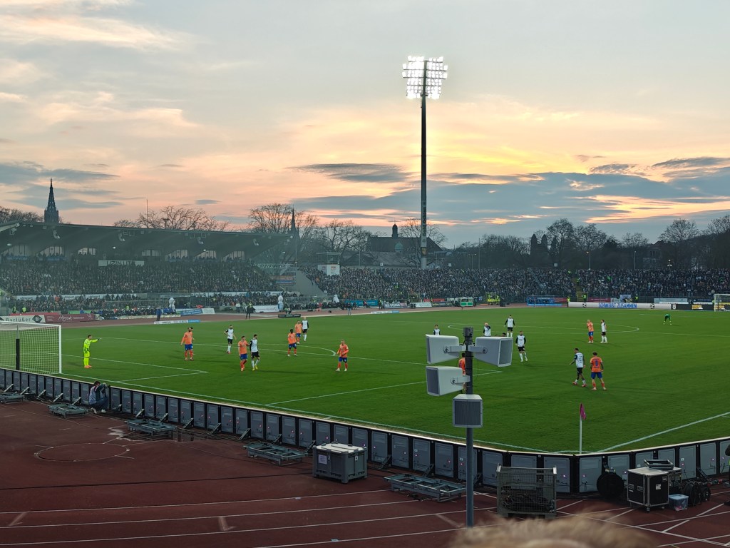 Ulm Donaustadion perjantai 28.3.2025 klo 17:30. Donaustadion eli Tovana-stadion on saaanut nimensä vieressä virtaavan joen mukaan. Se on rakennettu vuonna 1925 eli se täyttää tänä vuonna pyöreät 100 vuotta. Ihan samalla kentällä ja samoilla katsomoilla ei toki tällä hetkellä pelata, mutta sijainti sekä historia ei ole muuttunut mihinkään. Aikaisimmilla kausilla 3. Ligassa pelatessaan joukkue on joutunut talvikuukausina lähtemään evakkoon, koska stadion ei ole saanut pelilupaa jalkapalloliitolta. Tällä kaudella fasiliteetteja on parannettu, joten nyt Ulm saa nauttia kotikentästään koko kauden. Vahvasti kasarihenkinen stadion vetää reilut 17 000 katsojaa, joista seisomapaikkoja on 10 000. Kaudella 2024-2025 yleisökeskiarvo on ollut vähän yli 15 000, joka viitisen tuhatta enemmän kuin edelliskaudella 3. Ligassa. Ulm vetää siis yli 10 prosenttia kaupungin väestöstä pelipäivänä stadionille.