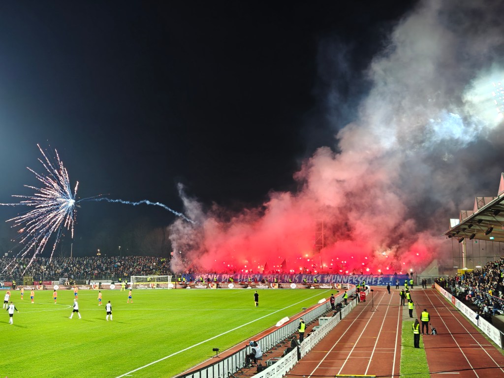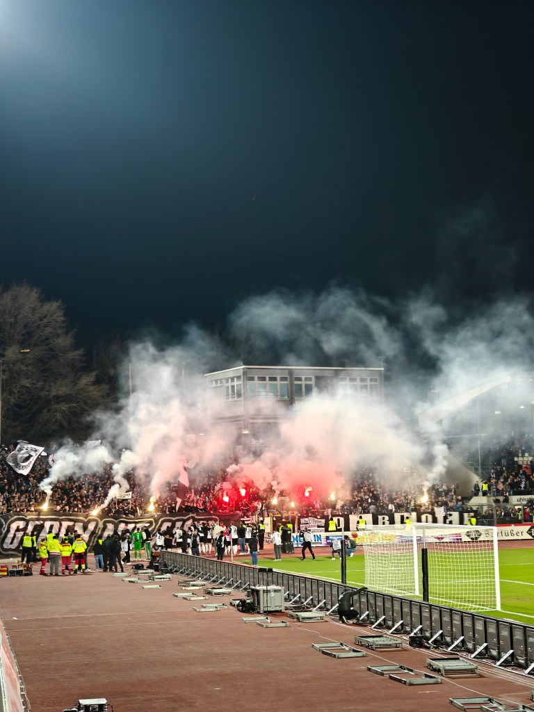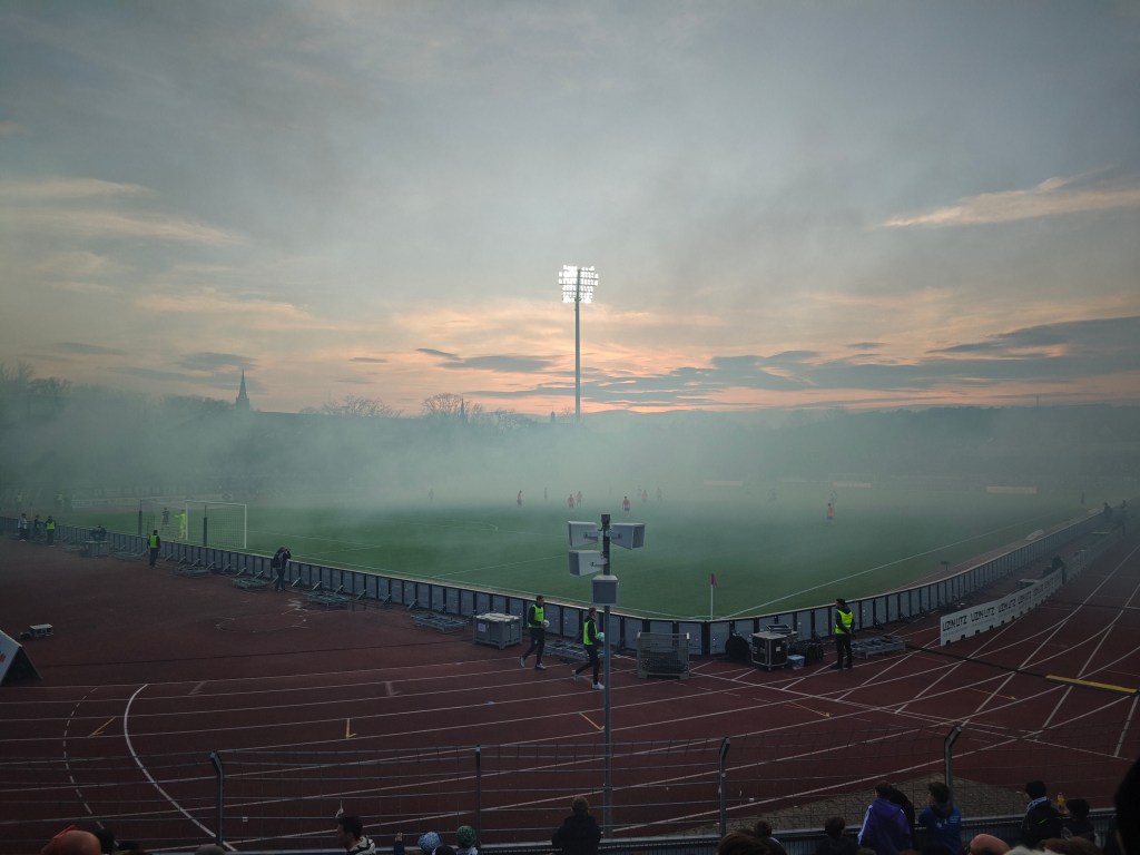 Ottelu olisi muuten valmis alkamaan, mutta koko kenttä on savun peitossa SSV Ulm-kannattajien soihdutusten vuoksi. Koska päädyt ovat avonaiset, ei ”tuulettamiseen” mene paljoakaan aikaa ja tuomari pääsee viheltämään pilliin. Meidän harmiksemme Luka Hyryläinen ei päässyt ottelussa avaukseen, mutta peliminuutteja lienee silti luvassa myöhemmin tänään.