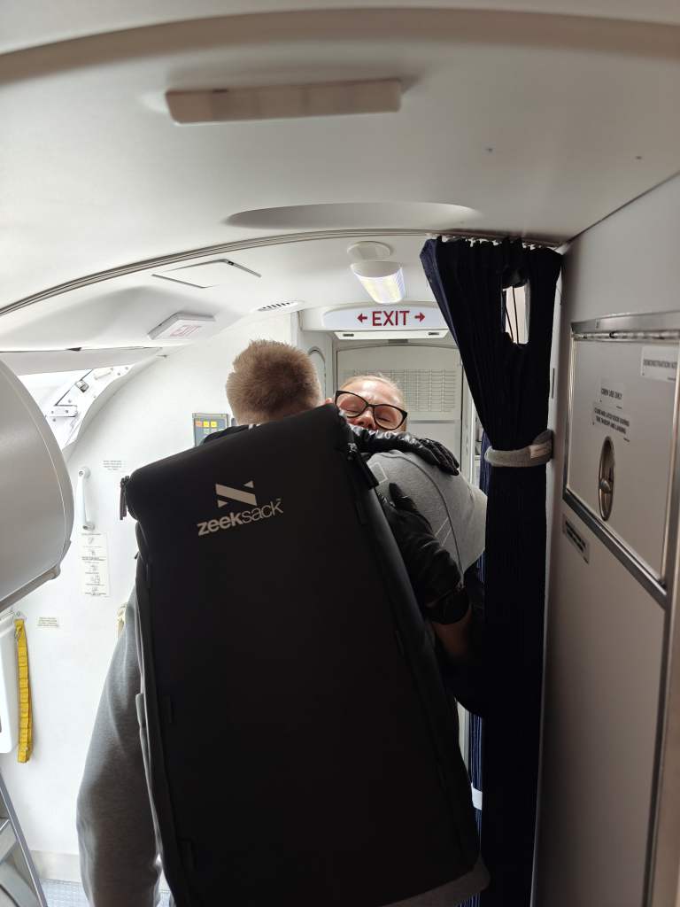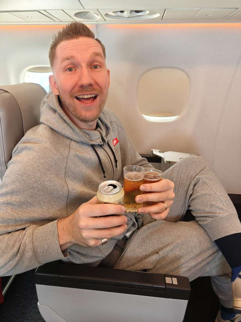 Krakova, perjantaina 26.9. klo 14:30. Olimme Mailapojan kanssa ottaneet totutusti matkan suunnitteluhommat kapeille hartioillemme ja täyttäneet viikonlopun kalenterin puolalaisella urheilukulttuurilla ja junamatkailulla. Meistä aika harva oli käynyt koko maassa ja kaikille oli ensimmäinen kerta, kun paikallista futista ja lätkää oltiin katsomassa. Aamupäivän lento oli mennyt oikein mukavasti ainakin minulla, Mailapojalla ja Mieskarkilla, koska olimme upgradenneet itsemme businekseen. Kovin usein Finnairin kusisissa koneissa ei tule syötyä muikkuja, kaiken maailman jutuilla pikkelöityjä kanapihvejä tai edes korvapuusteja, mutta nyt tuli. Kyytipojaksi maistui olut, punaviini ja kaukolennoilta tuttu Finnairin oma drinksu. Muutamaa penkkiriviä taaempana olleet Laamanaaman Halpamatkalaiset valittelivatkin sitten nälkäänsä, kun olimme laskeutuneet. Erikoista. Meille osui lennolle maailman sympaattisin ja hauskin lentoemäntä, joka piti meistä huolen kympin arvoisesti koko matkan. Harvoin sitä tulee koneesta poistuttaessa halattua lentoemäntää, mutta nyt tuli sellainenkin asia tehtyä alla näkyvän Mieskarkin esimerkillä.
