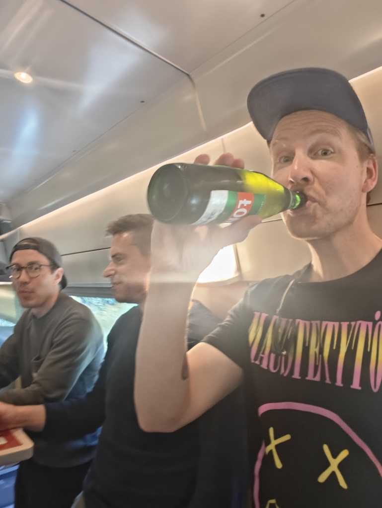 Meillä on puolitoista tuntia paluujunaan, joten osa porukoista palauttelee olutmukeja joissa on muhkea pantti, ja osa pyörii ties missä. Hajaannumme kolmeen ryhmään ja lopulta näemme toisemme vasta asemalla. Iloksemme viinipullokin on säilynyt matkassa mukana, joten isoin odotuksin toivomme, että jostain löytyisi sille myös avaaja. Lopulta junassa pullomme saa traagisen lopun, kun junasiivooja kävelee turkulaisten ohi ja nappaa pullon heidän edestään. Tulihan kannettua Krakovasta saakka. Junan aivan varmasti paras tunnelma löytyy ravintolavaunusta, josta olin varannut meille loossin heti sisään hypätessämme. Turkulaismiehet pistävät parastaan ja Sami Hedbergin kuuntelisi kateellisena juttuja. Välillä käydään läpi Pakistanin krikettiskeneä, josta kukaan meistä ei tiedä yhtään mitään ja välillä jotain aivan muuta. Kun laskeudumme junasta Krakovan juna-asemalla mietin ääneen, että kunpa tuo junamatka ei olisi päättynyt ollenkaan.