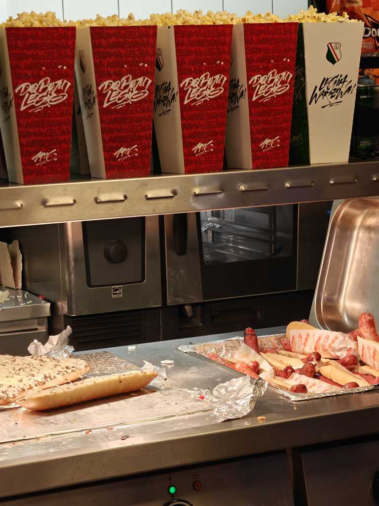 Odotukset Legian ottelutapahtumalle on korkealla, vaikka tiedostamme, ettei nyt ole se kiimaisin peli ja Legia on muutenkin ollut viime vuosina vähän väsynyt esimerkiksi Poznanin menoon verrattuna. Osa meidän porukasta on jo katsomossa fiilistelemässä ja me muutama muu tulemme vasta hieman ennen ottelun alkua, kun piti hoidella huivi-, olut- ja makkaraostokset kondikseen. Tuolla tulikin syötyä kaikkien aikojen hodari, jonka nakin koosta Mailapoikakin tuli kateelliseksi. Myös kuvassa vasemmalla puolella näkyvä kansallisherkku Zapiekanka vei nälkää näppärästi eteenpäin.