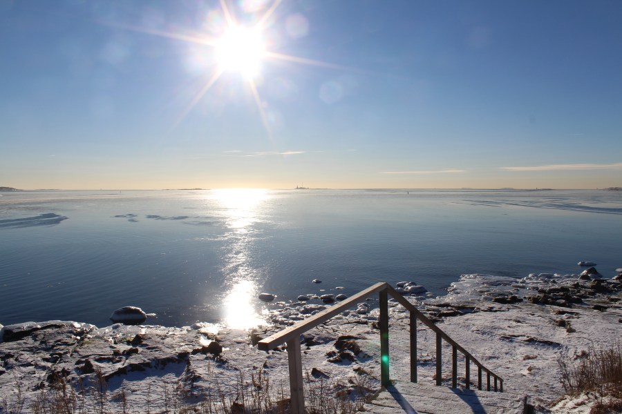 Lämpömittari, tai pitäisikö tässä tapauksessa sanoa kylmyysmittari näyttää -13 astetta. Astun Suomenlinnan lauttaan ja siirryn kannelle katsomaan, kun lautta lähtee Helsingin kauppatorin laiturista. Kylmyys ei tunnu pahalta, kun päällä on lämpimästi päällä ja vielä kun aurinkokin paistaa pilvettömältä taivaalta, antaa Suomen talvi parastaan. Jos meillä olisi aina tälläinen ilma eikä harmaista loskapäivistä olisi tietoakaan, niin kaikki …